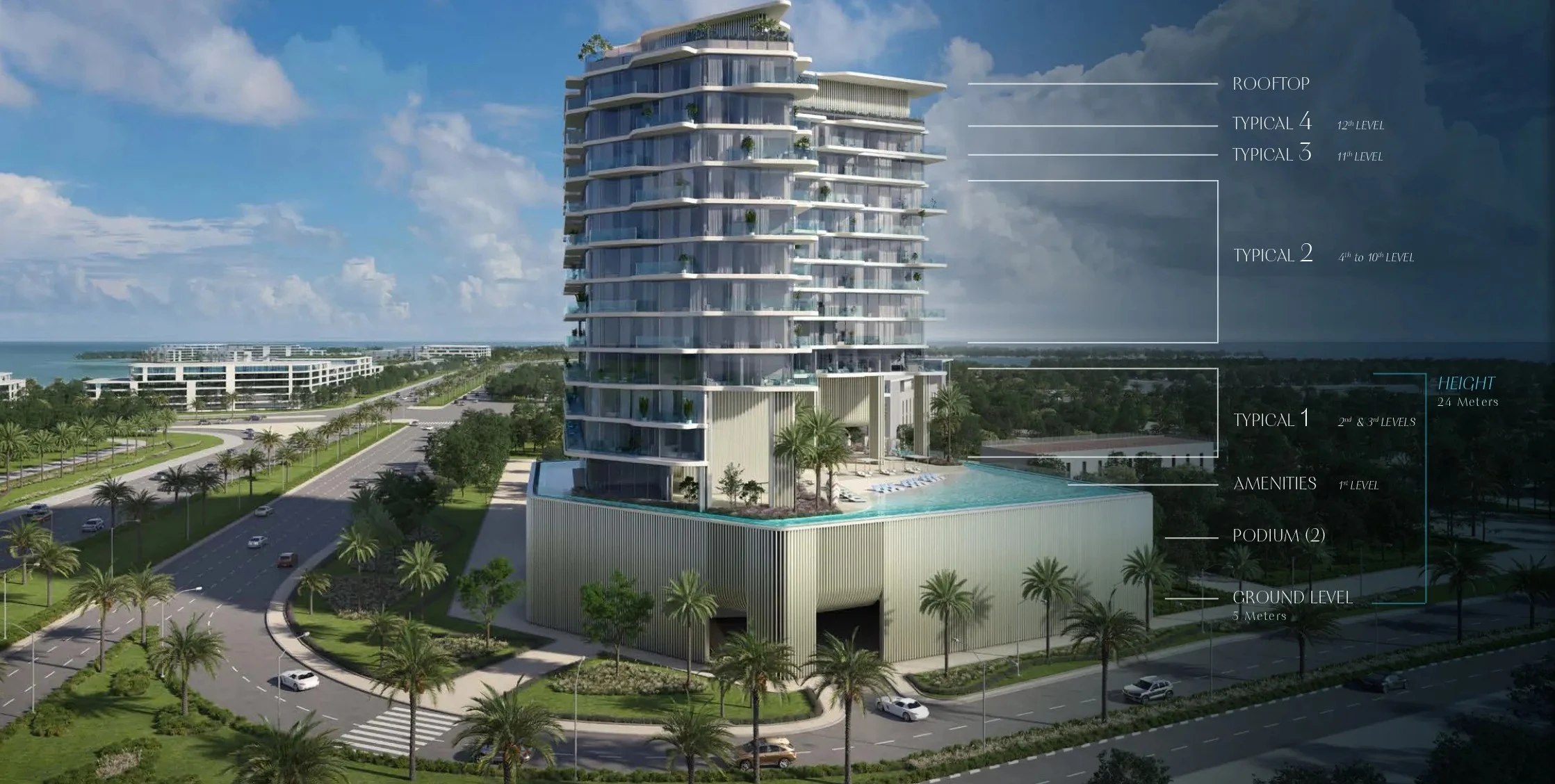 An iconic façade that captures the essence of coastal elegance. Inside, every space is adorned with premium finishes that reflect a dedication to luxury, comfort, and timeless design.