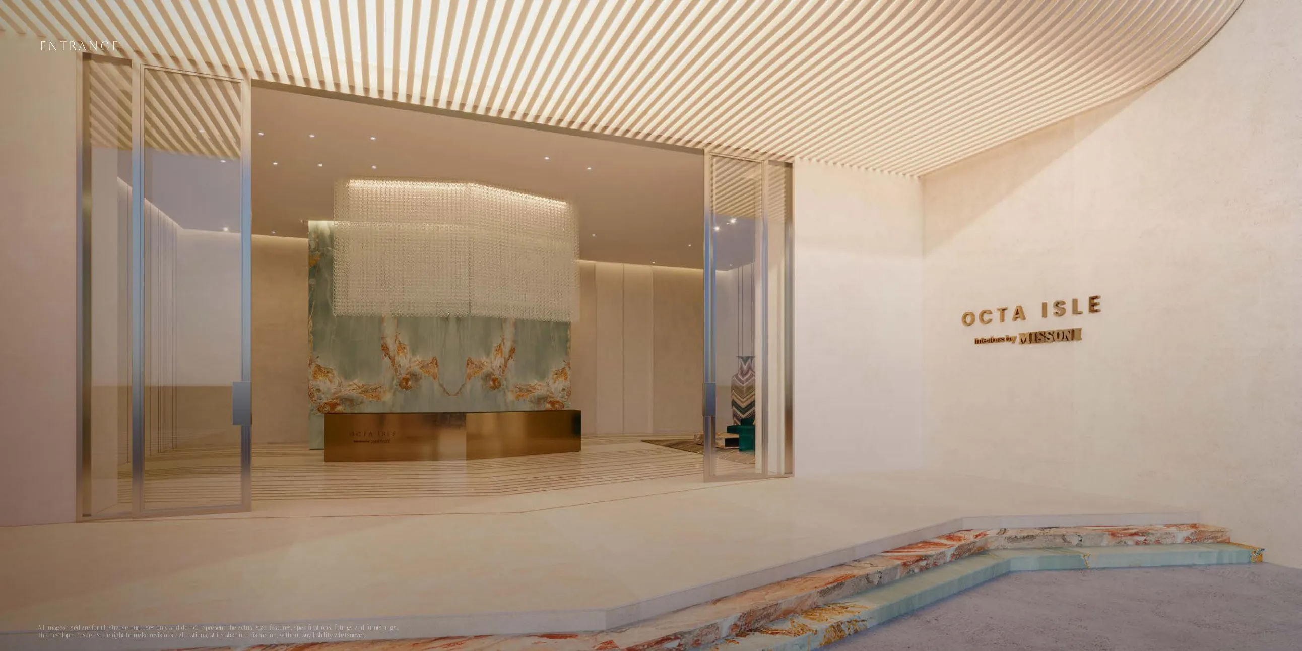 The entrance at Octa Isle blends coastal charm with modern sophistication, creating a warm and elegant arrival experience that reflects the luxury and tranquility of island living.